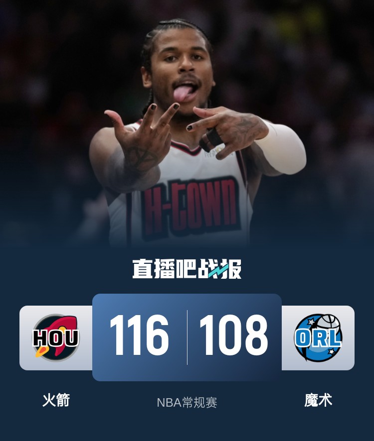 首节之争双方状态起伏不定几次互换领先,魔术开局占优但进入轮换的间隙出现得分荒,火箭抓住对手4分钟一分未得的机会送出9-0的攻势实现反超;次节开局轮到火箭哑火前4分30秒里仅杰伦-格林罚球拿到2分,魔术则起势轰出一波15-2的攻势直接扭转局势;不过后半段火箭迅速找回感觉,狄龙连拿8分成功过度威胁期,末段以范弗利特的压哨三分为首送出20-8的攻势重新取得4分领先进入下半场。休息归来火箭在拉锯半节时候后外线突然开火轰出12-0的攻势直接拉开两位数分差,末节火箭一路保持领先,魔术虽然在末段连续强凿缩小至8分但没能再进一步。最终,火箭客场击败魔术豪取8连胜。