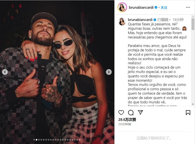 2月5日讯 内马尔的女友Bruna Biancardi今天在Instagram发文,祝福33岁生日的男友。Bruna写道:“我们经历了多少个阶段,对吧?有些好,有...