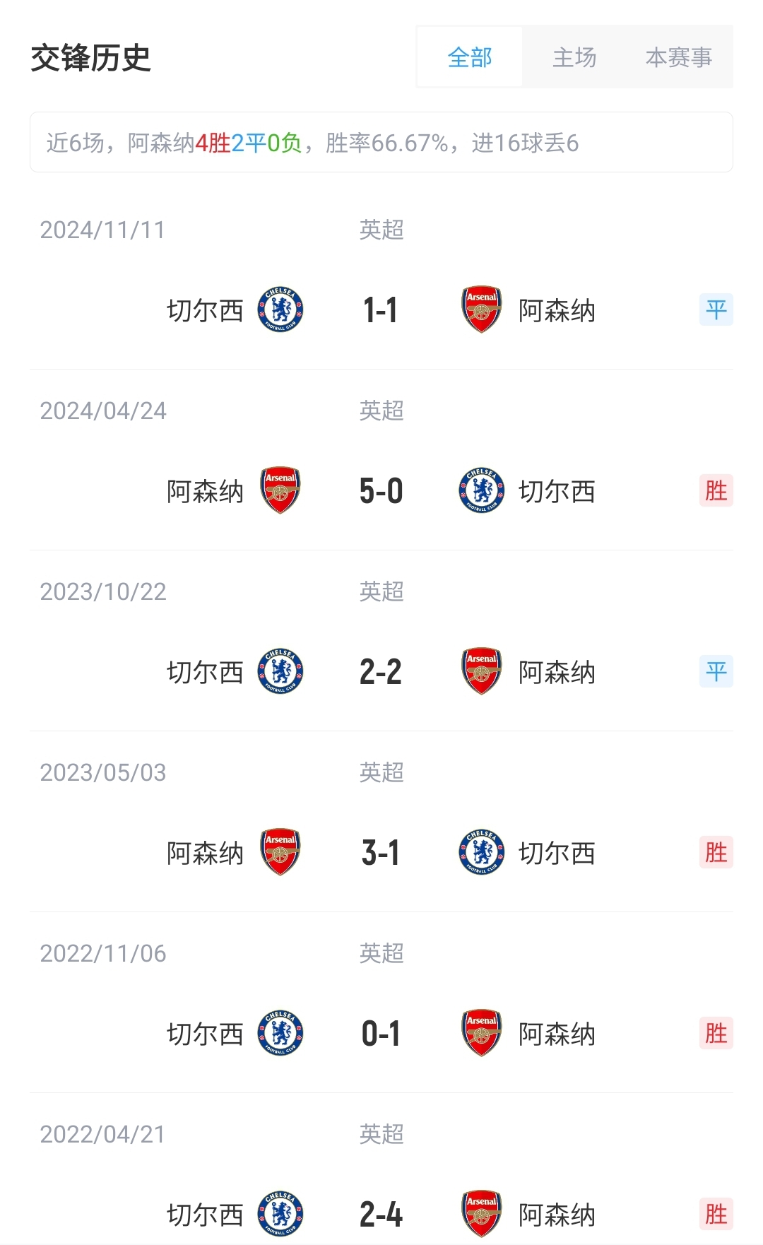 目前英超积分榜上,阿森纳15胜10平3负积55分,位列第2;切尔西14胜7平7负积49分,位列第4。近6次交手,阿森纳4胜2平保持不败。