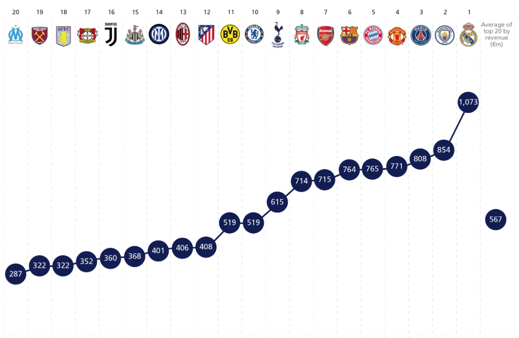 03月08日讯 欧足联公布了新的一期欧洲俱乐部财务报告,其中包含了欧洲顶级俱乐部2024年总收入的排行。在2024欧洲俱乐部收入排行里,皇马以...