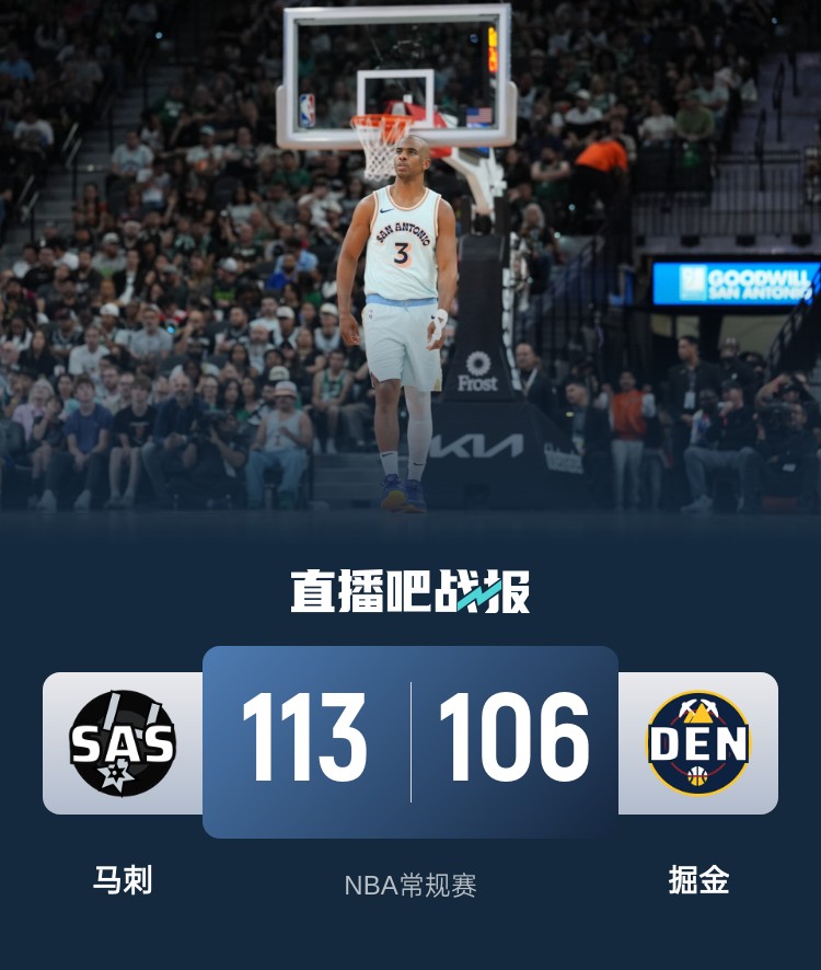此役一上来马刺反客为主迅速发力,一波9-0早早确立优势,威少连投带传短暂止血,首节结束时马刺已经领先12分,次节回来,威少率队继续追分,掘金找到进攻节奏内外开花,但马刺全员发力稳扎稳打,半场战罢,马刺依然领先12分。易边再战后掘金延续追分势头,威少里突外投单节独得14分,三节结束后掘金仅落后3分,末节决战,掘金进攻再度停滞,保罗连中三分率队守住胜果,掘金回天乏术,最终马刺113-106力克对手,掘金被湖人反超降至西部第4。