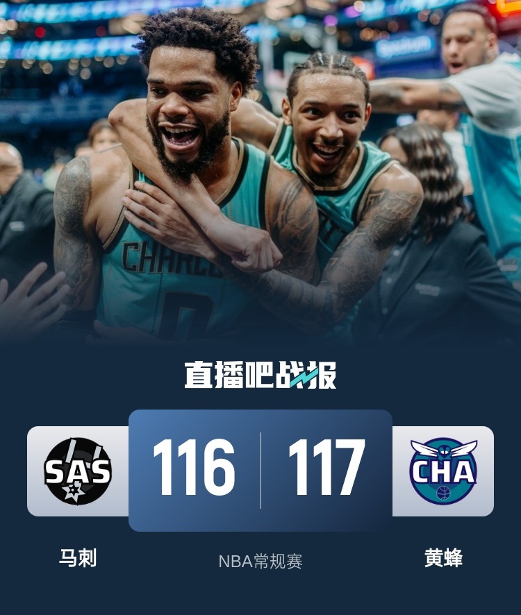比赛上来,黄蜂就率先进入状态打出8-2的开局取得领先,整个第一节马刺的进攻表现都不太好,分差也是被拉开到了两位数,次节黄蜂有进一步扩大领先的趋势,好在是马刺回应一波15-4稍稍止血,半场结束时黄蜂领先12分;下半场回来,马刺虽然有反扑的势头但黄蜂总能及时给出回应,分差一直在十分左右,末节没有放弃的马刺连中三分将比赛悬念打了回来,关键时刻福克斯福克斯连中两球完成反超,布里奇斯命中准绝杀三分,福克斯再中绝杀三分可惜超时,最终黄蜂险胜马刺止住六连败。